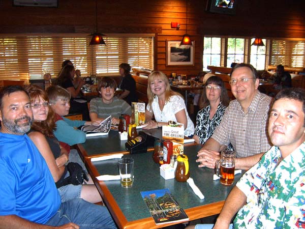 Sunday, May 27, 2007 We awoke to an eerie landscape. The winds had shifted overnight and the entire area was foggy with smoke from the forest fires that had been burning along the Florida-Georgia border for the last two or three weeks. We hit the road at 7:30am. We will be doing mostly highway miles today, so we will cover the distance in short time. About an hour or so down the road we hit Florida. After about 150 miles we rode out of the forest fire smoke. It stunk of burnt wood and death. It singed our eyes and burnt our throats and nostrils. I don't see how people can live here in this. I feel badly for them. We stopped at a Wendy's for a butt break and we still reeked of smoke. Not long after getting out of the smoke, we found it was the season for lovebugs! Insex! (See the picture at the top of this page) We wondered why all the other motorcyclists were riding with their heads down by their gas tanks like they were in a racing position, but once we started getting hit by the lovely splatters from the love bugs, it was painfully obvious. Pretty soon, the air was thick with them for miles at a time. We rode through swarms on and off in most of the State, except for the very Southern section. Gross! We settled into our hotel in Clearwater and hooked up with Sean. It was great to see him again!! Sean gave us a tour at his home and his shop where he sells antiques. We stopped at some friends of Sean's for a barbecue. We went to Smoky Bones for supper and met Jeff's cousins Andy and Donna, as well as Andy's wife and Donna's children. It was fun to meet them and we enjoyed catching up over BBQ.