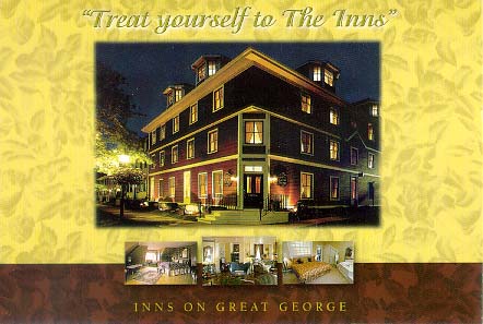 15 miles or so. Prince Edward Island was awesome, if we get no further, we have been on vacation! The rain had us checking in early, but it was no problem, they were expecting us. The lobby of the Great George Inn reminded me of a B&B. It had a setting from the 1800's, and a signed picture of Ann Murray on the piano. The rooms were set up like B&B as well. The bed was the size of two queen-size beds! We enjoyed a leisurely multicourse meal climaxed by a lobster dinner at the Off Broadway restaurant, a place the hotel recommended. We walk around the downtown area for a while, noticing the unusual parking meter setup. We stopped for dessert at the Claddagh Oyster House. We had fresh Malpeque, Colville, and Raspberry Point scallops from the local waters. They were amazingly good. Then we went back to the room to check the weather. The shades were pulled, our bed was turned down, and there were little candies on the pillows. The towels were so thick that even after drying her hair, Joyce's towel wasn't even wet.