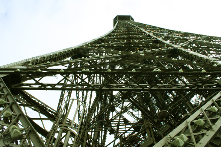 Looking up at the Eiffel Tower.