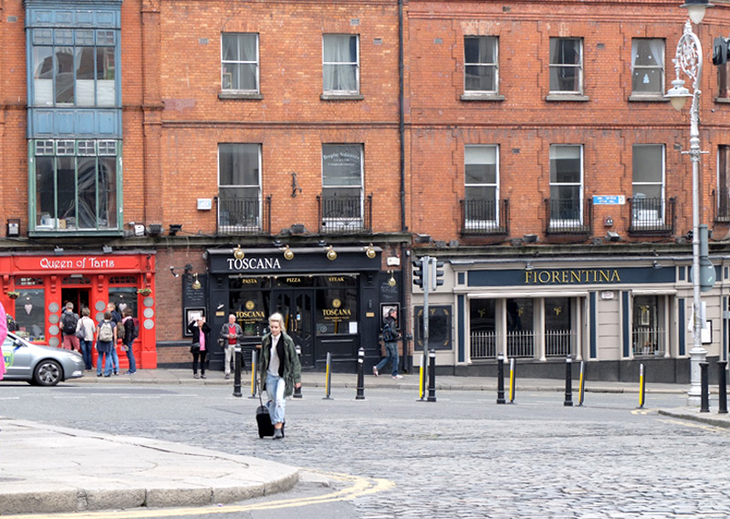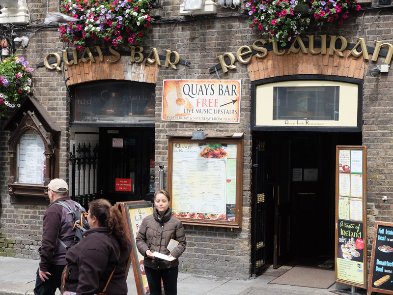 The flat in Dublin was very near the Laffey River and very near the historic Temple Bar district. A great central location for most of the sights. Our arrangement with our flat hosts was to meet one of them, Ali, in front of the flat at 9:30. He would take us to another flat they owned that was being renovated but where we could stash our luggage until our flat was ready at 1:30. He walked with us for a few blocks to show us one of the better places to exchange US dollars for Euros and pointed out a few places to see and eat.