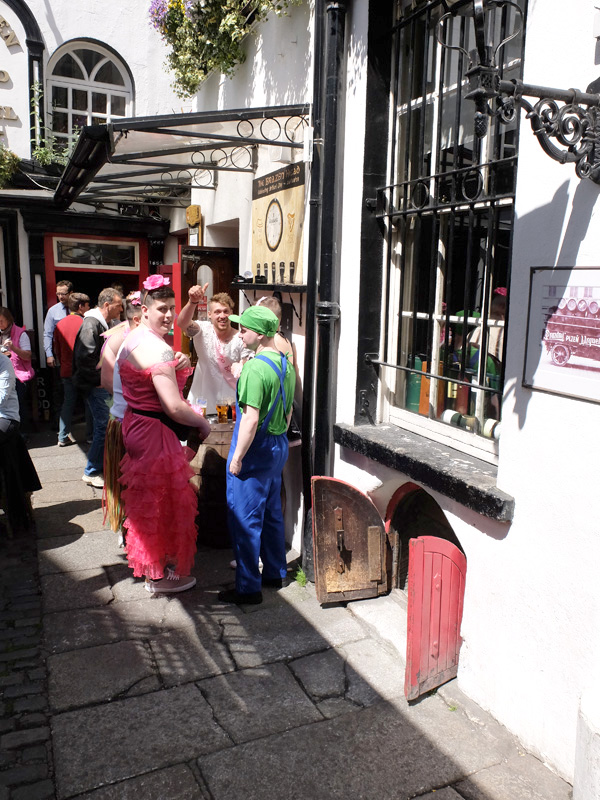 We continued walking until we got to The Brazen Head, the oldest bar in Dublin, and stopped to have a pint. The place was fairly crowded but we found seats in the bar and watched a big group of people who were congregated in the outdoor seating area and who were dressed in all sorts of unusual outfits as though it was a costume party. We learned it was a bachelor party and we learned that in Ireland they call bachelor and bachelorette parties 'stag' and 'hen' parties. They seemed to be thoroughly enjoying themselves.
