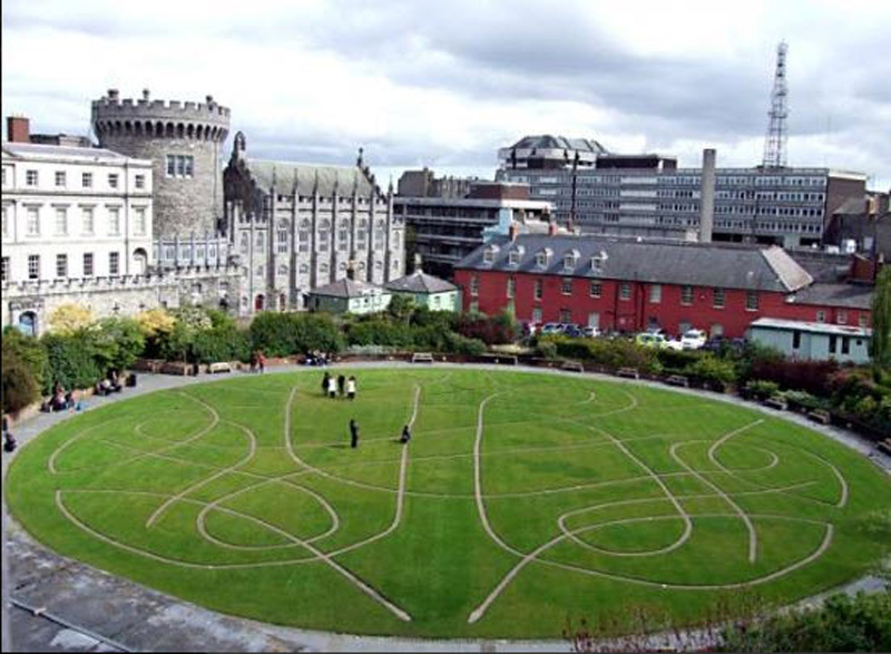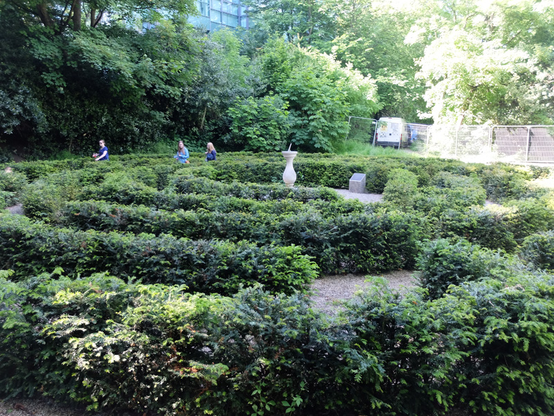 Iveagh Gardens hedge maze. Note the construction fences in the back.