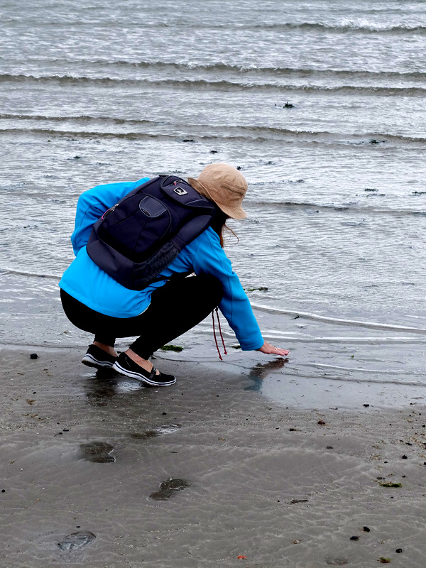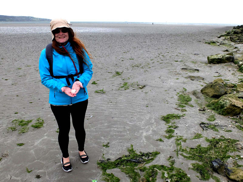 We rode the bikes to the end of the road by the sea and walked the rest of the way to the water's edge. The winds were so strong it was even hard to walk. The tide was low and several people were out playing on their toys that looked like wind surfers but with wheels. The high winds were pushing them at pretty fast speeds and we saw a couple times when the cart was actually blown over. We picked up a few souvenirs: a couple of sea shells and a couple 3-leaf clovers that we planned to give to Samantha who asked us to bring her something unique from Ireland.