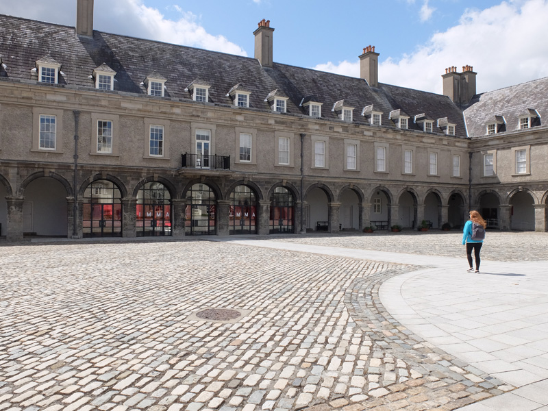 The tour was nice and at the end we got to taste test Jameson against Jack Daniels and Johnny Walker. The Jameson won in everyone's opinion. Love Jameson, sorry Jack. After we left the distillery we walked across the street to a pub for a pint. It was fairly busy and we sat next to a man who looked like he'd been drinking there for at least a couple hours. He kept glancing at us and finally began telling us about the Irish revolution and Michael Collins and the Blue Boys whose flag was hanging above the bar counter. He told us about the Collins Barracks which is now a museum a few blocks away. After our pints we headed to that museum.