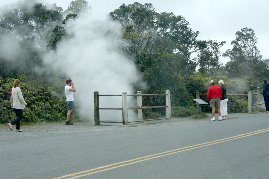 We slept 10 hours that night, guess it finally caught up with us. We enjoyed a cup of Kona coffee on the lanai. We drove South today and found a green sand beach, a black sand beach, and had lunch at the Southernmost restaurant on the island. We found 4 geocaches and a travel bug! Drove to the east side of the island to Volcano National Park. The desolation from the lava is unbelievable. The craters are amazingly huge, and the steam coming from the active volcano is frightening! Some of the steam we learned is gasses emitting from the volcano. Where all of the lava comes from either flows under the surface or is forced out through eruption, yet it continues to flow; never seeming to run out, such an awesome mystery.